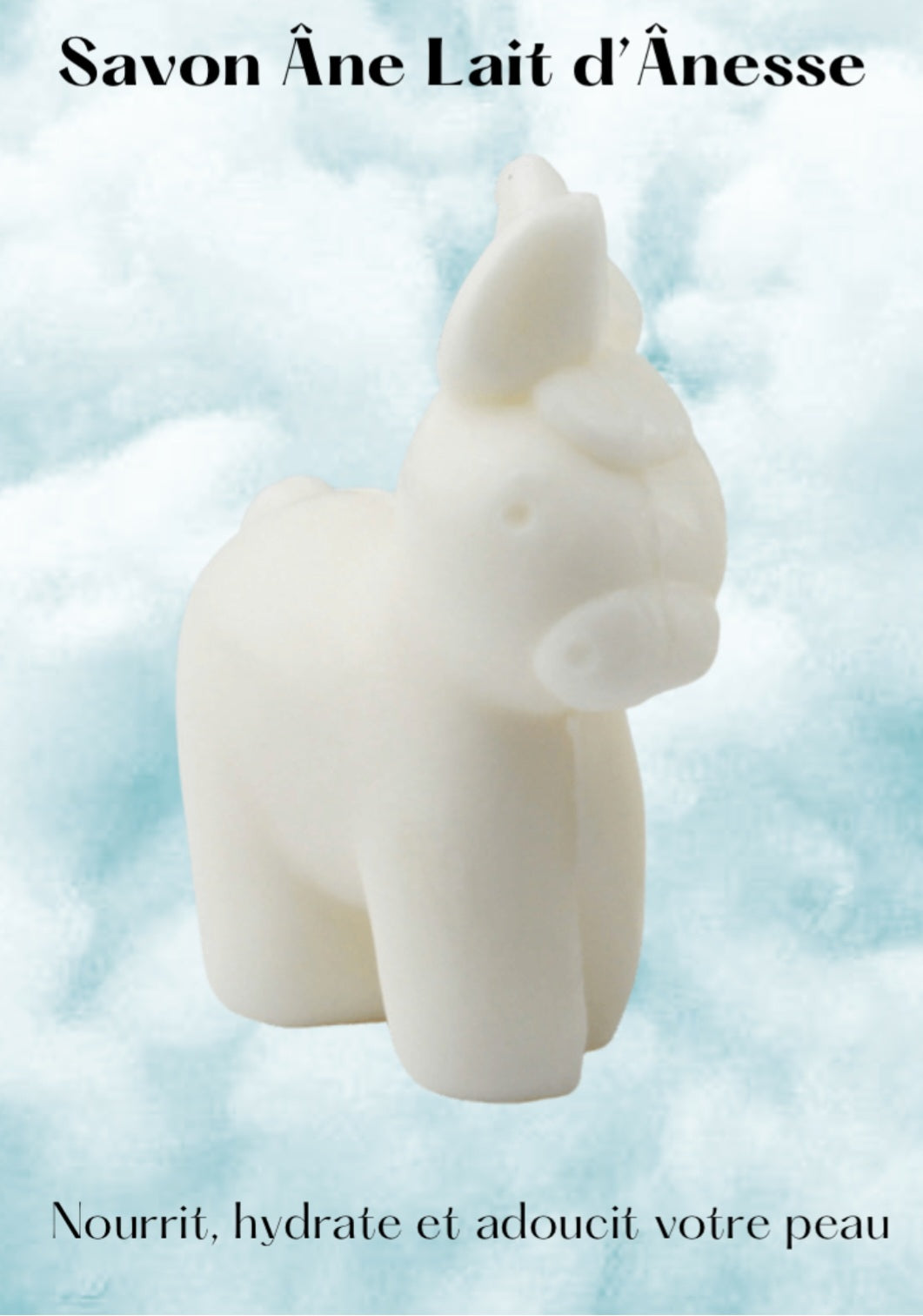 Un savon hydratant en forme d'Âne, au lait d'Ânesse bio.